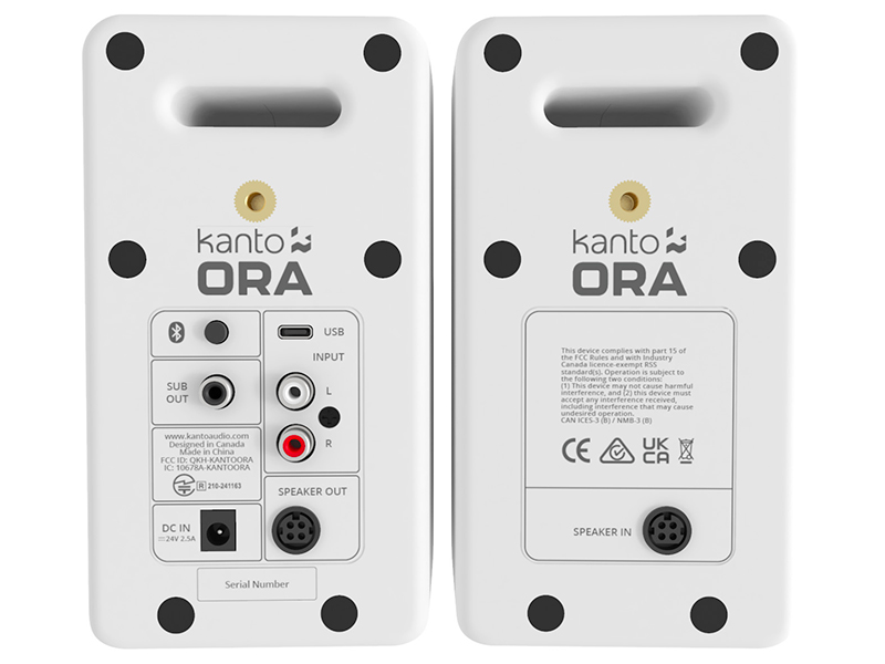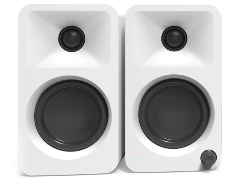 Diffusori amplificati a due vie, particolarmenti indicati per scrivania computer o libreria. Bass reflex posteriore. Tweeter da 1,9cm con cupola in seta e woofer da 7,6cm in carta trattata. Doppio amplificatore in classe D, 18W tweeter e 32W woofer, 100W di picco. Risposta in frequenza da 70Hz a 22KHz. Ingressi: RCA, USB-C (24bit/96KHz) e Bluetooth 5.0. Uscita Subwoofer. Dimensioni (LxPxA): 10x14x17,5cm. Peso: 2Kg (coppia).