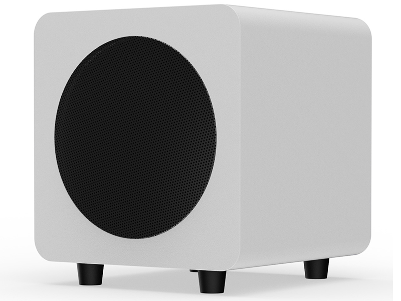 Subwoofer attivo in sospensione pneumatica. Woofer da 15,5cm con cono in carta trattata. Amplificatore in classe D con potenza di 100W RMS e 200W di picco. Risposta in frequenza 40-175Hz. Ingresso: RCA. Regolazione del volume e della frequenza di taglio. Fase 0/180°. Accensione automatica. Dimensioni (LxPxA): 22x22x24cm. Peso: 5Kg.
