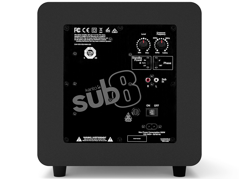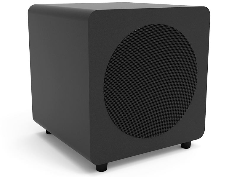 Subwoofer attivo in sospensione pneumatica. Woofer da 20cm con cono in carta trattata. Amplificatore in classe D con potenza di 150W RMS e 300W di picco. Risposta in frequenza 35-175Hz. Ingresso: RCA. Regolazione del volume e della frequenza di taglio. Fase 0/180°. Accensione automatica. Dimensioni (LxPxA): 28x28x30,3cm. Peso: 8,3Kg.