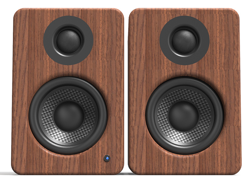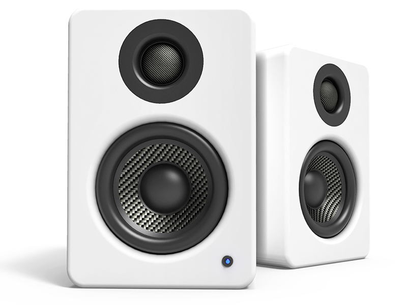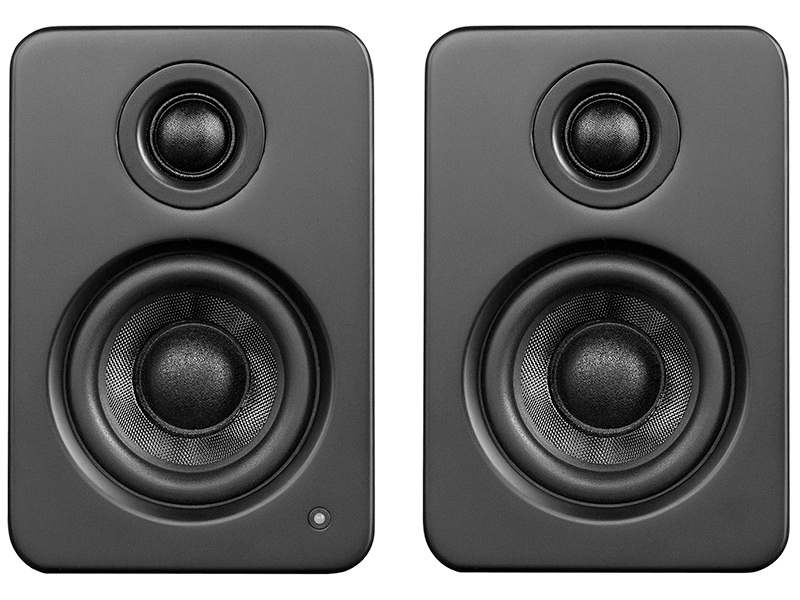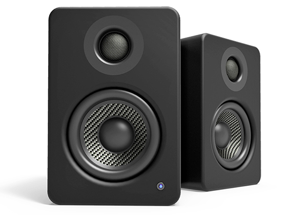 Diffusori amplificati a due vie, particolarmenti indicati per scrivania computer o libreria. Bass reflex posteriore. Tweeter da 1,9cm con cupola in seta e woofer da 7,6cm in composito di kevlar. Amplificatore in classe D da 50W RMS e 100W di picco. Risposta in frequenza da 80Hz a 20KHz. Ingressi: jack 3,5mm e USB (DAC interno). Uscita subwoofer. Dimensioni (LxPxA): 10x13,5x15cm. Peso: 2,7Kg (coppia).
