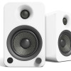 Diffusori amplificati a due vie da libreria. Bass reflex posteriore. Tweeter da 2,5cm con cupola in seta e woofer da 10cm in kevlar. Amplificatore in classe D da 70W RMS e 140W di picco. Risposta in frequenza da 60Hz a 20KHz. Ingressi: RCA con switch Phono, jack 3,5mm, 2 ottici e Bluetooth 4.0 aptX. Uscite: Subwoofer e USB per carica 5V 1A. Telecomando in dotazione. Dimensioni (LxPxA): 14x19x22cm. Peso: 5,7Kg (coppia).