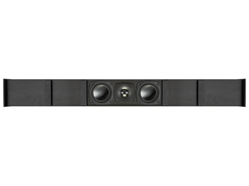 Soundbar - Canale centrale personalizzabile in larghezza per TV da 43" a 67". 1 Tweeter da 25mm a cupola X-PAL(TM) da 25mm con lente acustica ad allineamento di fase PPA(TM) e 2 woofer/midrange da 114mm con cono in alluminio anodizzato. Sensibilità 94dB. Risposta in frequenza in asse 130Hz - 21KHz. Potenza amplificatore 15-130W. 8ohms. Chassis in alluminio estruso con griglia frontale in tela su supporto MDF e aggancio magnetico. Dimensioni (LxAxP): customx135x60mm. Supporto per fissaggio a muro in dotazione, vari accessori di montaggio opzionali.