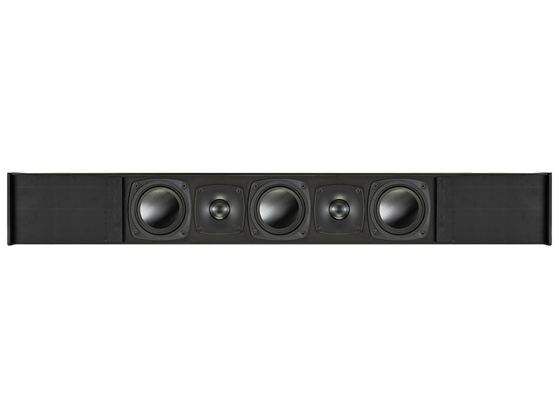 Diffusori L/C/R Stereo + canale centrale personalizzabile in larghezza per TV da 65" a 85". 4 Tweeter da 25mm a cupola X-PAL(TM) da 25mm con lente acustica ad allineamento di fase PPA(TM) e 6 woofer/midrange da 114mm con cono in alluminio anodizzato. Sensibilità 92dB. Risposta in frequenza in asse 130Hz - 21KHz. Potenza amplificatore 15-130W. 8ohms. Chassis in alluminio estruso con griglia frontale in tela su supporto MDF e aggancio magnetico. Dimensioni (LxAxP): customx135x60mm. Supporto per fissaggio a muro in dotazione, vari accessori di montaggio opzionali.