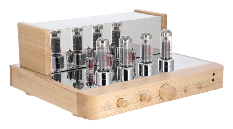 Canor TP101 A30 non è solo un amplificatore a valvole dall’aspetto assolutamente classico, è anche, forse soprattutto, la celebrazione dei primi 30 anni del costruttore slovacco. L’aspetto è molto simile a quello del primigenio Canor TP101 ma in esso sono state applicate tutte le tecnologie che hanno resa famosa Canor. La tecnologia CMT (Canor PCB Milling Technology) che emula il cablaggio in aria con l’affidabilità e la ripetibilità di quella con circuito stampato, stabilizzazione poi della tensione di alimentazione con la tecnologia VSC (Voltage Stabilization Circuit), condensatori di accoppiamento Mundorf di alta qualità, cablaggi interni con cavo OFC placcato argento e trasformatori di uscita in permalloy. Insomma ingredienti moderni in un design classico, Canor TP101 A30 alterna inox e legno, in due colori, chiaro o scuro, abete o noce, anche con tasti e manopole in legno, per un design senza tempo e che ricorda molto da vicino i vecchi amplificatori a valvole.