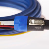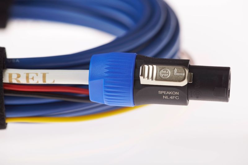 Accanto ai cavi LFE, REL continua a ribadire l’importanza del collegamento ad alto livello, da sempre uno dei tratti distintivi del marchio. In questo ambito si inserisce il nuovo Bass Line Blu Cable, un cavo dedicato esclusivamente al collegamento proprietario ad alto livello REL. Qui la filosofia è radicale e senza compromessi: rame purissimo a singolo conduttore, realizzato su specifiche militari, scelto per garantire la massima coerenza del segnale e una trasmissione estremamente naturale. Il conduttore viene fatto passare in un bagno di nitrogeno, un processo pensato per eliminare impurità residue e stabilizzare ulteriormente il materiale, migliorando le prestazioni elettriche nel tempo. Il lato subwoofer è affidato a un connettore Neutrik Swiss-made, sinonimo di affidabilità assoluta e contatto perfetto, mentre lato amplificatore troviamo terminazioni a spada dorate, studiate per assicurare una connessione solida e duratura. Il rivestimento in guaina blu, molto flessibile, facilita l’installazione anche in spazi difficili, senza stress meccanici sul cavo o sui connettori.