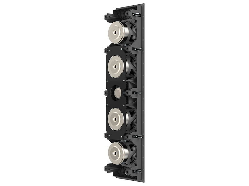 Diffusore LCR/Surround da incasso a 2,5 vie. 4 Woofer (JW13AI-4) da 130mm con cono in alluminio matrix e tweeter (2410H-2) a compressione HDITM da 25mm con diaframma in Teonex™. Potenza da 25 a 200W. Impedenza 4 ohm; Risposta in frequenza da 50Hz a 30KHz (-6dB). Sensibilità: 91dB (1 Watt a 1 metro) @60Hz. Interruttore controllo del basso. Morsettiera a pressione dorata. Griglia bianca verniciabile ad attacco magnetico. Posizionamento sia in verticale che in orizzontale. Foro di monatggio (LxA): 157x766mm. Profondità di montaggio 92mm. Dimensioni (LxAxP): 185x796x97 mm. Peso 10,7kg.