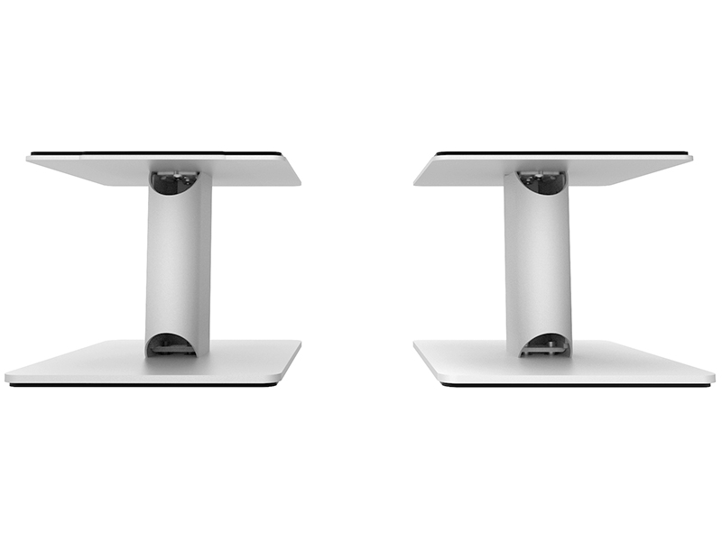 Supporto da scrivania in acciaio verniciato a polveri. Eleva il diffusore di 15cm. Possibilità di ruotare il diffusore di 45° sul piano orizzontale. Diffusore ad appoggio su supporti in gomma anti vibrazione. Peso max diffusore 13,5Kg. Passaggio dei fili nel gambo. Dimensioni (LxPxA): 17,8x21,5x15,2cm. Indicato per
