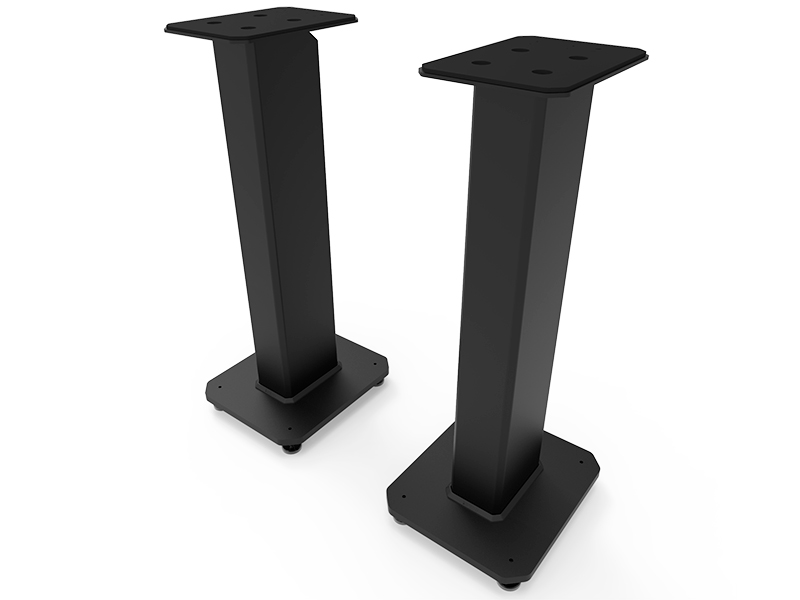Stand da pavimento in acciaio verniciato a polveri. Altezza da terra 66cm. Compatibile con diffusori di medie e grandi dimensioni. Peso max diffusore 18Kg. Sistema di disaccoppiamento stand/pavimento. Passaggio dei fili nel gambo. Due top plate in dotazione (LxP): 13,3x16,5cm e 16,5x23,5cm con fori di fissaggio standard.