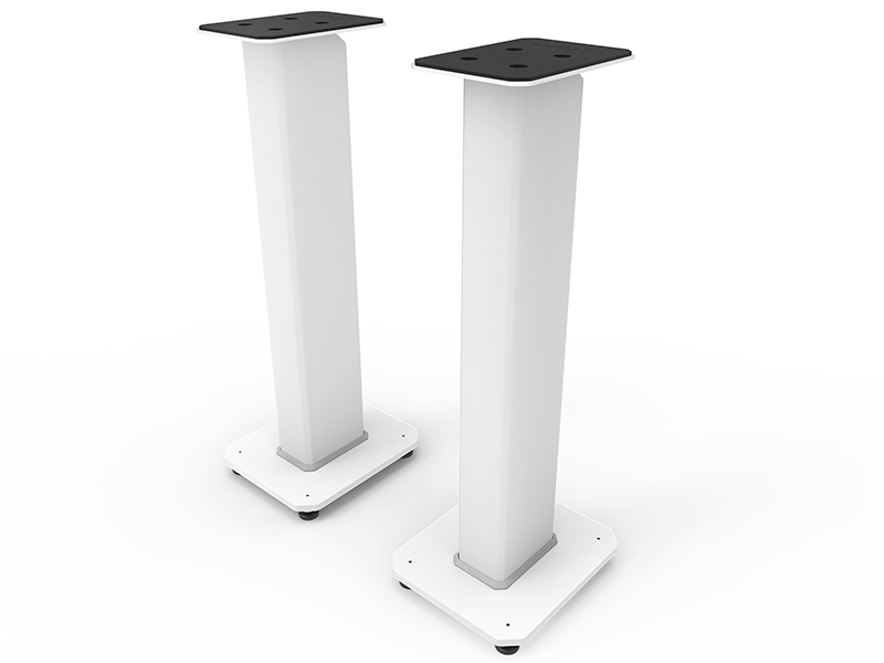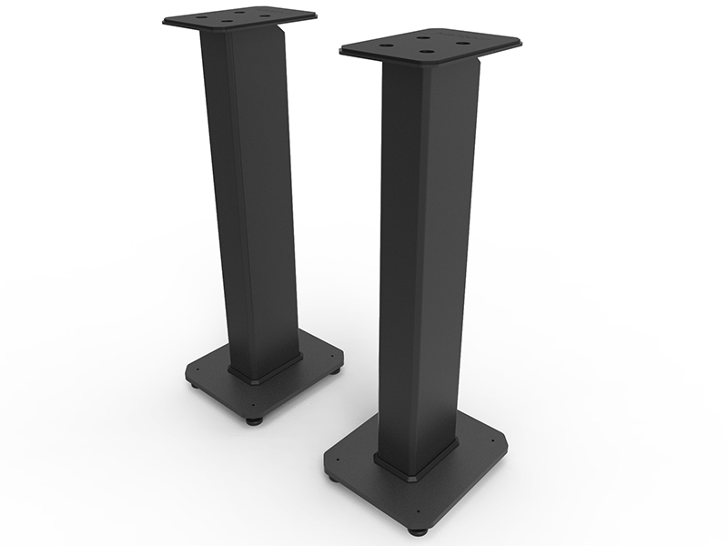 Stand da pavimento in acciaio verniciato a polveri. Altezza da terra 78cm. Compatibile con diffusori di medie e grandi dimensioni. Peso max diffusore 18Kg. Sistema di disaccoppiamento stand/pavimento. Passaggio dei fili nel gambo. Due top plate in dotazione (LxP): 13,3x16,5cm e 16,5x23,5cm con fori di fissaggio standard.