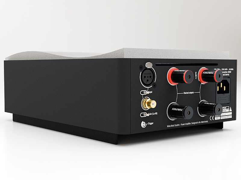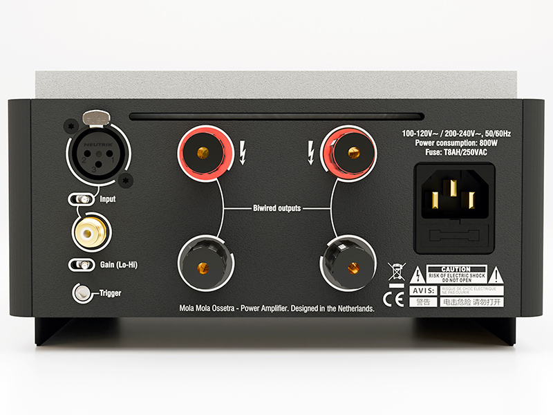 Dal punto di vista architetturale, Mola Mola Ossetra è un amplificatore di potenza full bridge, soluzione che rende il percorso del segnale completamente bilanciato dall’ingresso fino all’uscita contribuendo in modo decisivo alla coerenza e alla stabilità delle prestazioni. La risposta in frequenza, è estesa fino ai 100 kHz, e rimane perfettamente piatta all’interno della banda audio, e a completare il quadro, la distorsione dello stadio di ingresso si colloca al di sotto dell’attuale soglia di misurazione, attestandosi intorno a –150 dB, pari a circa lo 0,000003%, un valore che testimonia l’eccellenza assoluta delle prestazioni dello stadio di potenza.
