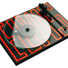 Elvis Turntable fa parte della Artist Collection del noto costruttore austrico, ed è, prima di tutto, un eccellente giradischi. Piedini appositamente selezionati che isolano il giradischi dalle vibrazioni, sistema di controllo della velocità con trazione a cinghia collegata a un sottopiatto in composito ABS rinforzato con fibra di vetro, e montato su un cuscinetto ultra preciso da 0,001 mm con asse in acciaio temprato e boccola in ottone. A differenza di molti modelli che utilizzano motori a corrente continua non regolati, Pro-Ject T2 adotta un motore a corrente alternata con velocità elettronica controllata e commutazione automatica tra 33 e 45 giri al minuto. Il risultato è un sistema di trasmissione stabile, preciso e silenzioso. Il braccio del giradischi, lungo nove pollici, è realizzato in un unico pezzo di alluminio e utilizza un cuscinetto a basso attrito che garantisce la massima precisione durante l’ascolto. Il porta testina integrato elimina le vibrazioni indesiderate e rappresenta un netto miglioramento rispetto alle soluzioni rimovibili. Il meccanismo anti-skating regolabile a molla, abbinato alla cartuccia Sumiko Rainier pre-tarata con puntina ellittica in diamante, consente di sfruttare appieno il potenziale del sistema per una riproduzione hi-fi autentica.