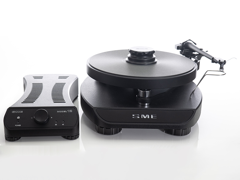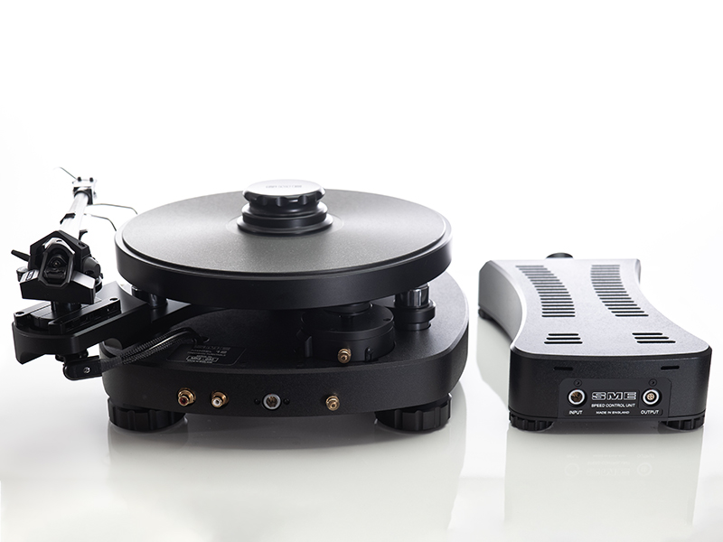 Giradischi con trazione a cinghia e braccio SME Serie Vi in resina polimerica con cablaggio interno Crystal Cable in argento monocristallino puro. Telaio e sub telaio in estruso di alluminio lavorati CNC e completamenti isolati l'uno dall'altro. Perno centrale da 19mm in acciaio cromato che ruota su cuscinetti di bronzo in sede sigillata. Piatto in lega di alluminio lavorato dal pieno e dal peso di 4,6Kg. Record clamp in dotazione. Motore sincrono in AC bi-fase, con unità separata per la regolazione della velocità 33/45 ultra precisa a passi di +/-0,01% tramite DSP dedicato. 4 Piedini di appoggio completamente disaccoppiati dal telaio e regolabili in altezza.Peso giradischi 21,26Kg.