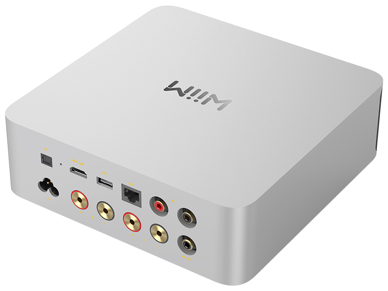 Amplificatore/Streamer/DAC di rete. Trasmissione della musica tramite DLNA, WiFi 6E, Chromecast, Bluetooth 5.3 sia in trasmissione che in ricezione, Alexa Cast e Google Cast. Potenza 2x100W su 8ohm e 2x200W su 4ohm. Stadio di amplificazione in classe D con circuitazione PFFB (Post Filter Feedback). Dac integrato audiophile ESS Sabre ES9039Q2M (24bit/192KHz). Amplificatori operazionali Ti OPA1612 con chip di amplificazione Ti TPA3255. Servizi di streamer più diffusi integrati, come Spotify, Tidal, Qobuz, Amazon Music, etc. Roon ready. App WiiM Home sia per iOS che Android. CPU Quadcore A53. Multiroom. Ingresso analogico RCA. Ingresso ottico. Ingresso HDMI ARC con decoder Dolby Digital. Presa Ethernet. Presa USB. Uscita Sub. Morsetti dorati per uscita diffusori. Display Oled da 3,5" touch screen. Telecomando. Dimensioni (LxAxP): 200x200x7,25mm. Peso: 2,5Kg.