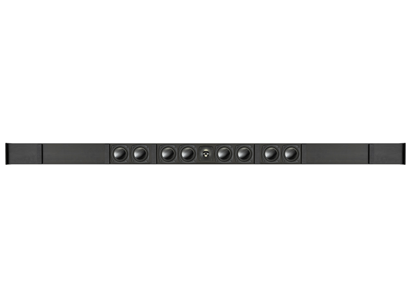 Soundbar - Canale centrale personalizzabile in larghezza per TV da 85" a 100". 1 Tweeter da 25mm a cupola X-PAL(TM) da 25mm con lente acustica ad allineamento di fase PPA(TM) e 8 woofer/midrange da 114mm con cono in alluminio anodizzato. Sensibilità 94dB. Risposta in frequenza in asse 130Hz - 21KHz. Potenza amplificatore max 150W. 8ohms. Chassis in alluminio estruso con griglia frontale in tela su supporto MDF e aggancio magnetico. Dimensioni (LxAxP): customx135x60mm. Supporto per fissaggio a muro in dotazione, vari accessori di montaggio opzionali.