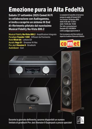 Per gli amanti della musica e dell’alta fedeltà un evento imperdibile: sabato 27 settembre 2025 presso la sede di Comet Hi Fi, in via Certani 10 a Budrio (BO), vi aspetta una giornata tutta dedicata al grande suono, con la possibilità di scoprire dal vivo uno dei prodotti più attesi dell’anno: il nuovissimo Musical Fidelity Nu-Vista 800.2.