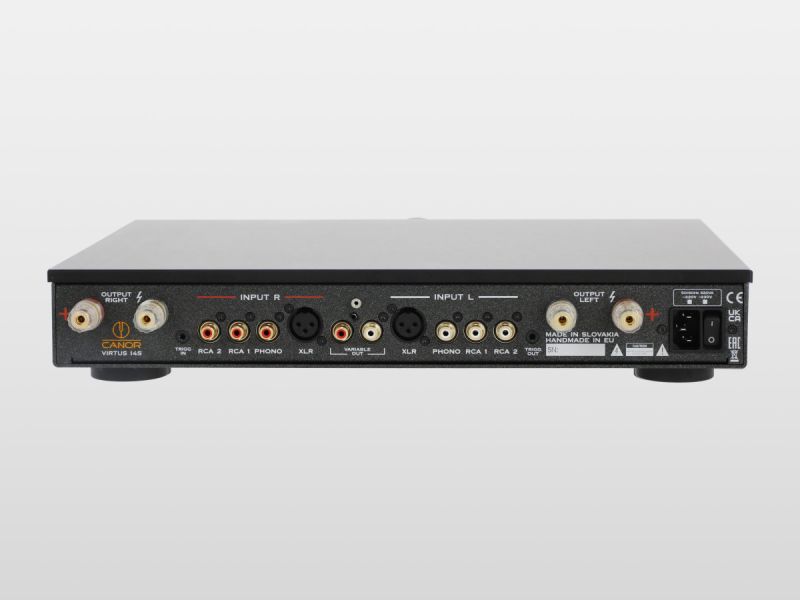 Il Virtus I4S integra un’alimentazione particolarmente generosa, con una capacità di filtraggio pari a 40.000 µF per canale. Il sistema proprietario Error Correction Technology, già adottato nei modelli di punta Canor, consente inoltre di ridurre la distorsione senza ricorrere a un feedback globale invasivo, preservando così la naturalezza del suono.