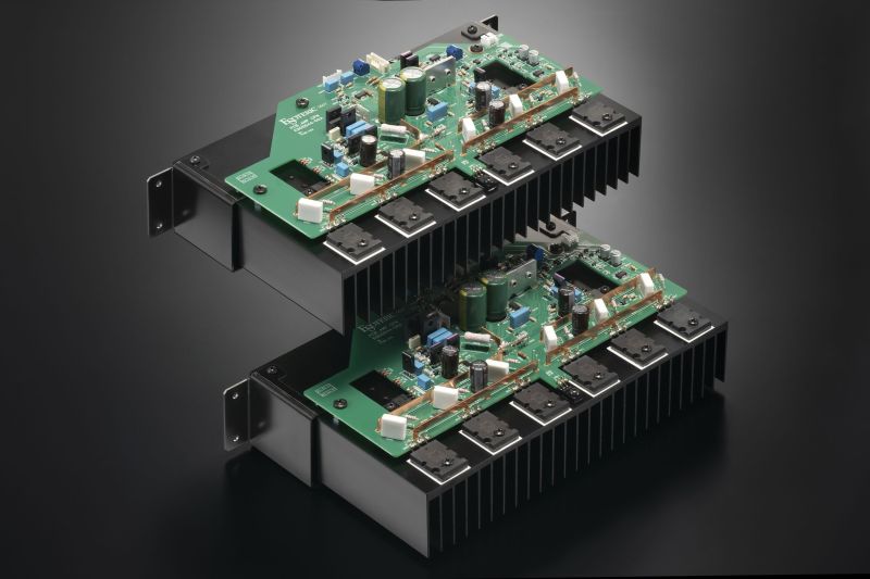 L’architettura è completamente dual mono, con separazione totale dei canali a partire dalla sezione di alimentazione. Nuovo lo stadio di ingresso bilanciato completamente simmetrico, progettato per ridurre ulteriormente il rumore, mentre il circuito di amplificazione finale utilizza transistor bipolari ad alta potenza in configurazione push-pull con tre dispositivi in parallelo, soluzione che consente di combinare la tipica finezza della classe A con una maggiore capacità dinamica rispetto all’S-05.