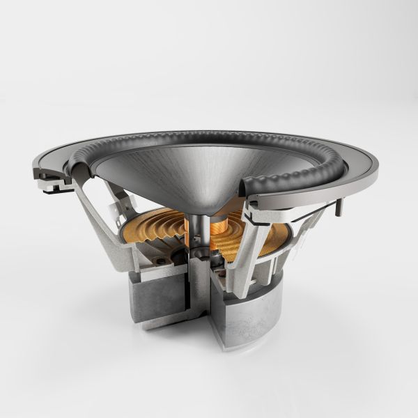Altoparlanti: 2 woofer da 18cm AL-MAG, 2 passivi 18cm, 1 midrange/tweeter coassiali da 15cm e 2,5mm AL-MAC