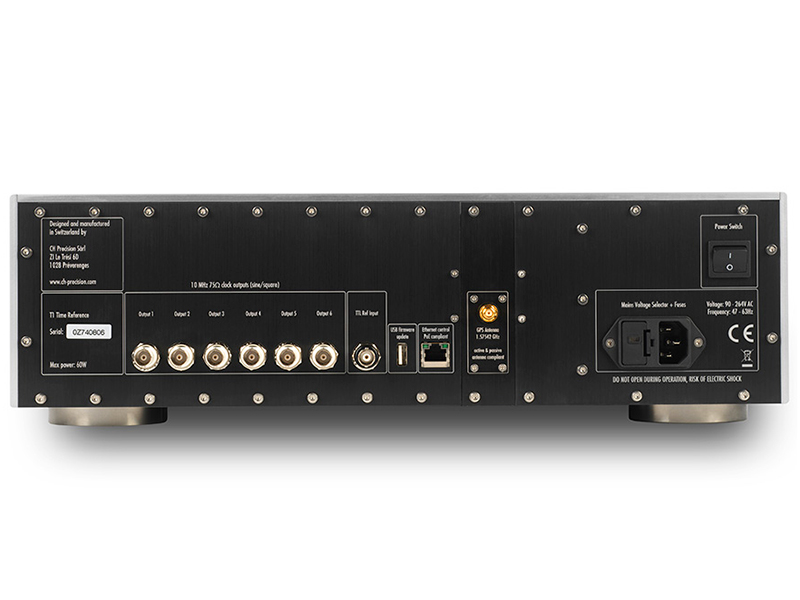 Generatore di clock con oscillatore OCXO. Uscita frequenza nominale 10MHz. 6 uscite BNC a 75ohm. Tensione d'uscita 1V o 500mV su carico di 75ohm. Scelta tra forma d'onda sinusoidale o quadrata. Precisione +/-1ppm attraverso ingresso PPS. Ingresso GPS per stadio GPS opzionale. Alimentazioni separate per circuitazione clock e oscillatore. Trasformatore toroidale schermato. Display a colori RGB Amoled con risoluzione 480x272 pixels. Ingresso USB per aggiornamenti software. Controllo remoto tramite presa Ethernet e CH control App.