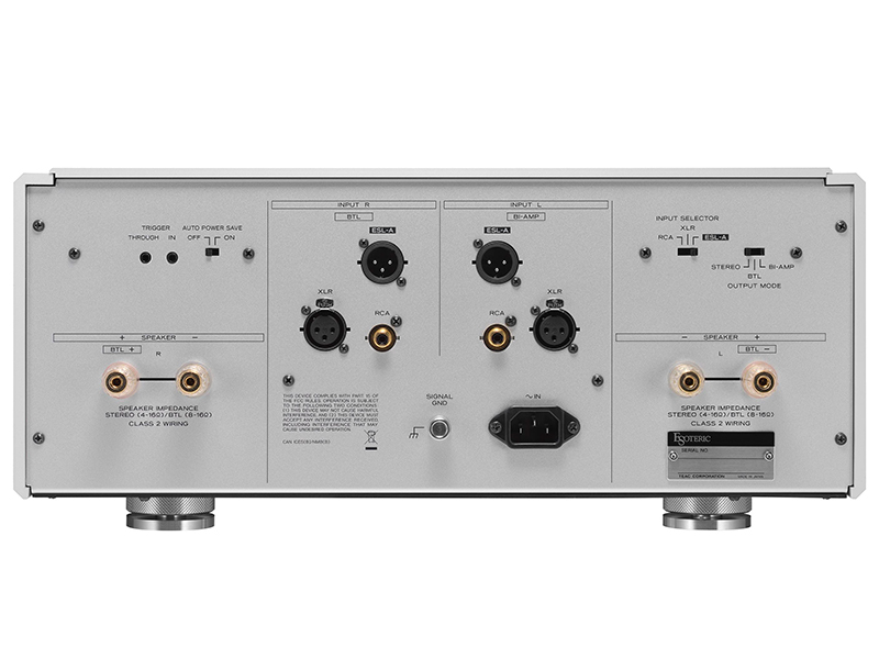 L’architettura è completamente dual mono, con separazione totale dei canali a partire dalla sezione di alimentazione. Nuovo lo stadio di ingresso bilanciato completamente simmetrico, progettato per ridurre ulteriormente il rumore, mentre il circuito di amplificazione finale utilizza transistor bipolari ad alta potenza in configurazione push-pull con tre dispositivi in parallelo, soluzione che consente di combinare la tipica finezza della classe A con una maggiore capacità dinamica rispetto al Esoteric S-05.