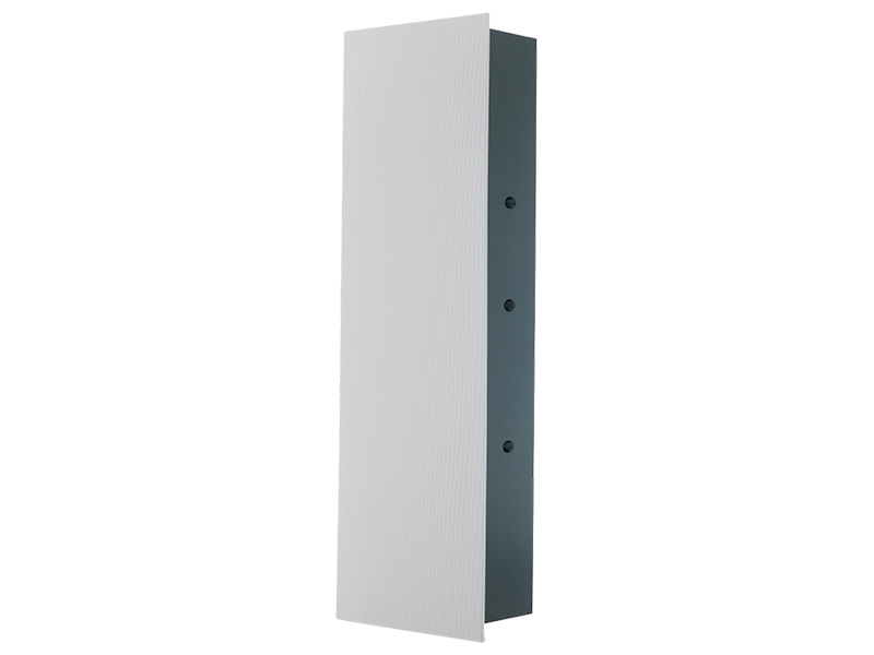 Diffusore LCR/Surround da incasso a 2,5 vie. 3 Woofer da 200mm con cono in alluminio matrix e tweeter (D2415K) a compressione HDI con doppia bobina da 38mm e diaframma in Teonex™ montato su baffle in SonoGlass. Potenza 450W RMS. Impedenza 6 ohm; Risposta in frequenza da 57Hz a 25KHz (-6dB). Sensibilità: 92dB (1 Watt a 1 metro) @60Hz. Controllo per le alte frequenze su 3 posizioni. Sospensione pneumatica. Doppia morsettiera per bi-wiring. Back box integrato in MDF. Posizionamento sia in verticale che in orizzontale. Griglia bianca verniciabile ad attacco magnetico. Foro di monatggio (LxA): 298,5x978mm. Profondità di montaggio 147mm. Dimensioni (LxAxP): 326x1022x153 mm. Peso 24,3kg.