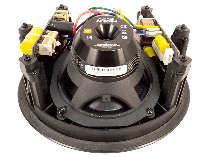 Diffusore LCR/Surround da incasso a 2 vie. Woofer (JW180PB-6) inclinato da 180mm con cono in alluminio matrix montato dietro un'apertura a guida d'onda e tweeter (2409H) a compressione HDITM da 25mm con diaframma in Teonex™. Dispersione di 60°. Potenza da 25 a 125W. Impedenza 6 ohm; Risposta in frequenza da 48Hz a 32KHz (-6dB). Sensibilità: 88dB (1 Watt a 1 metro) @60Hz. Interruttore controllo del basso. Morsettiera a pressione dorata. Griglia bianca verniciabile ad attacco magnetico. Foro di montaggio diametro 285mm. Profondità di montaggio 142mm. Dimensioni (LxAxP): 318x318x152 mm con griglia quadrata. Peso 4,2kg.
