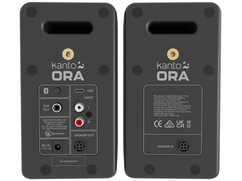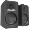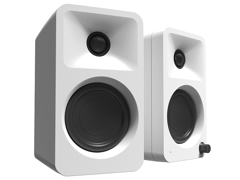 Diffusori amplificati a due vie, particolarmenti indicati per scrivania computer o libreria. Bass reflex posteriore. Tweeter da 1,9cm con cupola in seta e woofer da 7,6cm in carta trattata. Doppio amplificatore in classe D, 18W tweeter e 32W woofer, 100W di picco. Risposta in frequenza da 70Hz a 22KHz. Ingressi: RCA, USB-C (24bit/96KHz) e Bluetooth 5.0. Uscita Subwoofer. Dimensioni (LxPxA): 10x14x17,5cm. Peso: 2Kg (coppia).