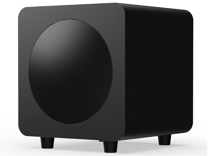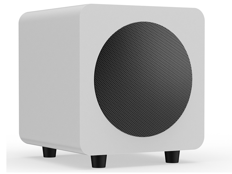Subwoofer attivo in sospensione pneumatica. Woofer da 15,5cm con cono in carta trattata. Amplificatore in classe D con potenza di 100W RMS e 200W di picco. Risposta in frequenza 40-175Hz. Ingresso: RCA. Regolazione del volume e della frequenza di taglio. Fase 0/180°. Accensione automatica. Dimensioni (LxPxA): 22x22x24cm. Peso: 5Kg.