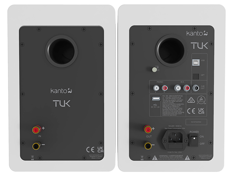 Diffusori amplificati a due vie da libreria. Bass reflex posteriore. Tweeter da 2,8cm a nastro AMT e woofer da 13,3cm in alluminio con parapolvere invertito. Amplificatore in classe D da 130W RMS e 260W di picco. Risposta in frequenza da 50Hz a 20KHz. Ingressi: RCA Phono, RCA, 1 ottico, USB DAC e Bluetooth 4.2 aptX HD e AAC. Uscite: cuffia jack 3,5mm, Subwoofer e USB per carica 5V 1A. Telecomando in dotazione. Griglie di protezione con attacco magnetico. Dimensioni (LxPxA): 17,8x21,5x27,6cm. Peso: 9,5Kg (coppia).