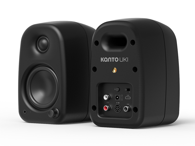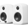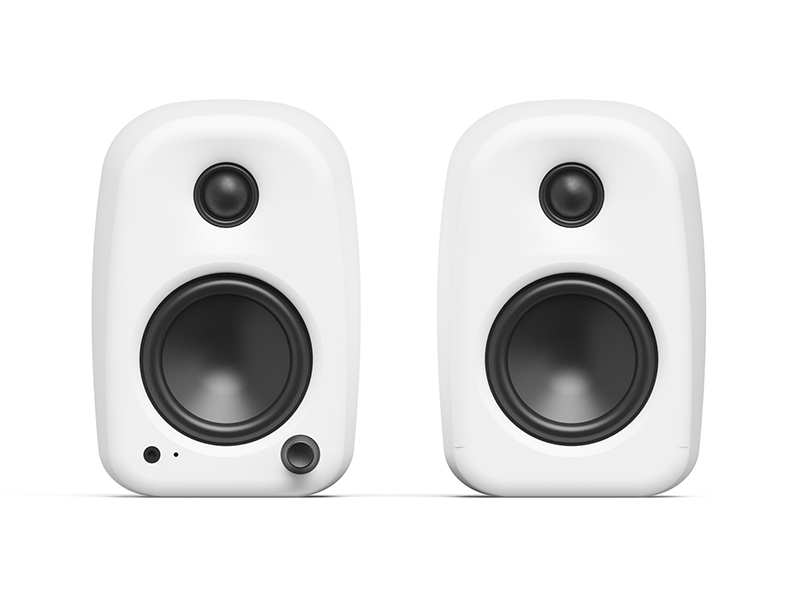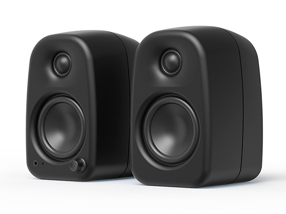 Diffusori amplificati a due vie, particolarmenti indicati per scrivania computer o libreria. Bass reflex posteriore. Tweeter da 1,9cm con cupola in seta e woofer da 7,6cm in carta trattata. Doppio amplificatore in classe D, 18W tweeter e 32W woofer, 100W di picco. Risposta in frequenza da 80Hz a 22KHz. Ingressi: RCA, USB-C (16bit/48KHz) e Bluetooth 5.3. Uscite: Subwoofer e cuffia 3,5mm. Dimensioni (LxPxA): 11,2x11x16,5cm. Peso: 1,9Kg (coppia).