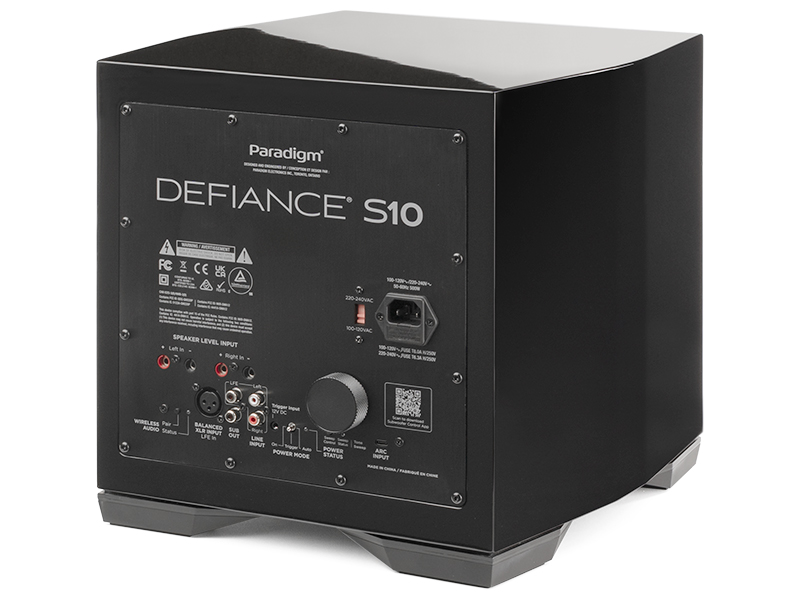 Subwoofer attivo wireless in sospensione pneumatica con emissione frontale. Woofer S-PAL™ a lunga escursione da 25cm con cono in alluminio e cestello in pressofusione d'acciaio. Potenza di amplificazione 500W continui e 1000W di picco, in classe D. DSP ad alta risoluzione con processamento a 64-bit. Ricevitore wireless interno e trasmettitore wireless in dotazione. Risposta in freq. minima 18Hz. Paradigm Subwoofer Control app per iOS e Android tramite Bluetooth. Possibilità di calibrazione tramite PBK ARC® Calibration Kit (opzionale). Regolazione del volume e del taglio di frequenza. Fase 0/180°. Test Tone. Ingressi linea RCA e LFE (anche XLR) e ingressi ad alto livello. Uscita Sub RCA. Trigger 12V. Cabinet in MDF da 2,54cm di spessore, con rinforzi interni. Piedini anti vibrazioni dotati anche di punte coniche. Dimensioni (LxAxP): 34,2x35,11x35,9cm. Peso: 15,7Kg.