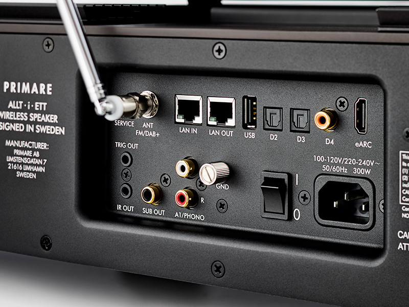 Dal punto di vista tecnico i numeri sono sbalorditivi. Primare Allt-i-Ett è infatti capace di erogare 300 watt complessivi che pilotano sei woofer, due midrange e due tweeter, n grado di offrire una scena sonora ampia e precisa, con una notevole estensione in basso, tanto da non necessitare per forza di un subwoofer esterno.