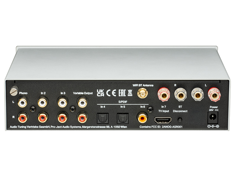 Pro-Ject Uni Box S3 non si fa mancare nulla nemmeno sul fronte delle connessioni. Sono presenti un ingresso phono MM per giradischi, due ingressi RCA di linea per lettori CD o altre sorgenti analogiche, oltre a ingressi digitali coassiale e ottico S/PDIF, HDMI ARC e Bluetooth.