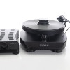 Giradischi con trazione a cinghia e braccio SME Serie Vi in resina polimerica con cablaggio interno Crystal Cable in argento monocristallino puro. Telaio e sub telaio in estruso di alluminio lavorati CNC e completamenti isolati l'uno dall'altro. Perno centrale da 19mm in acciaio cromato che ruota su cuscinetti di bronzo in sede sigillata. Piatto in lega di alluminio lavorato dal pieno e dal peso di 4,6Kg. Record clamp in dotazione. Motore sincrono in AC bi-fase, con unità separata per la regolazione della velocità 33/45 ultra precisa a passi di +/-0,01% tramite DSP dedicato. 4 Piedini di appoggio completamente disaccoppiati dal telaio e regolabili in altezza.Peso giradischi 21,26Kg.
